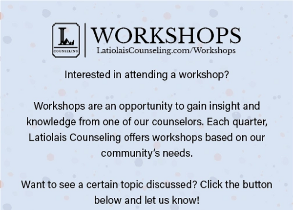Sign up to hear from us whenever we open up registrations for workshops and other events at Latiolais Counseling.